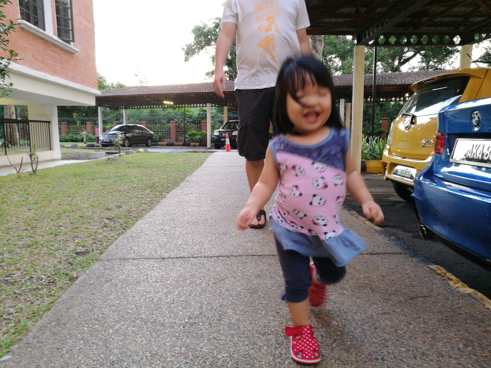 She was all active, running here and there. And was brave, too! When the nurse wanted to take her blood for some test, he poke that needle thing in on the back of her right hand first. When he poke the needle in, I held her tight and sang her favourite nursery rhyme. She did whine a little but didn't cry. Instead, she was watching the nurse doing his job in awe. Blood came out but not flowing. So he decided to do it again on her other hand. This time, she cried. I tried my very best not to cry along too cause I know she needs me.